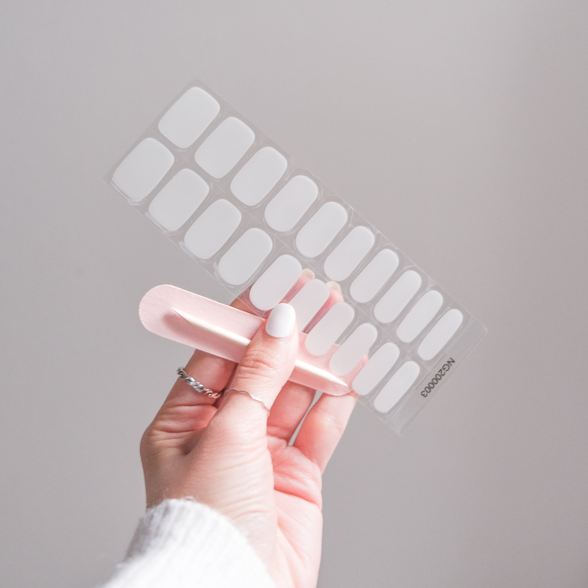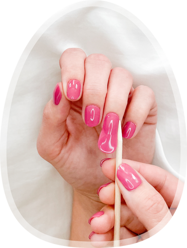 Aloituspaketin mukana tulee poistamista helpottava kristallitikku. Vaihtoehtoisesti voit myös käyttää esimerkiksi puutikkua. Käytä sitä vierittämällä varovasti geelikynsitarran alle kynnen reunoja pitkin, jotta saat helposti nostettua kynsitarran ylös kynnen päältä. Parhaan tuloksen saat, kun liotat kristallitikkua kynsilakanpoistoaineessa ennen käyttöä.