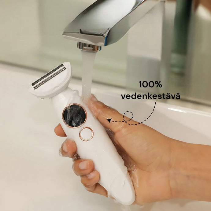 TrimmaPro™ sisältää 5 vaihdettavaa päätä eri käyttötarkoituksiin. Laitteessa on IPX7-vesitiiviys, ladattava akku USB-kaapelilla ja selkeä LED-näyttö, joka ilmoittaa akun varauksen. Soveltuu sekä kuivaan että märkään käyttöön.