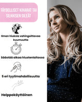 Hiustenmuotoilija luo vaivattomasti vaikuttavia kiharoita ja aaltoja, jotka eivät ainoastaan pysy täydellisenä koko päivän, vaan myös näyttävät luonnollisilta. Koe hiukset, jotka hehkuvat uskomatonta kiiltoa ja pehmeyttä, ja tuntuvat lisäksi ihanilta.